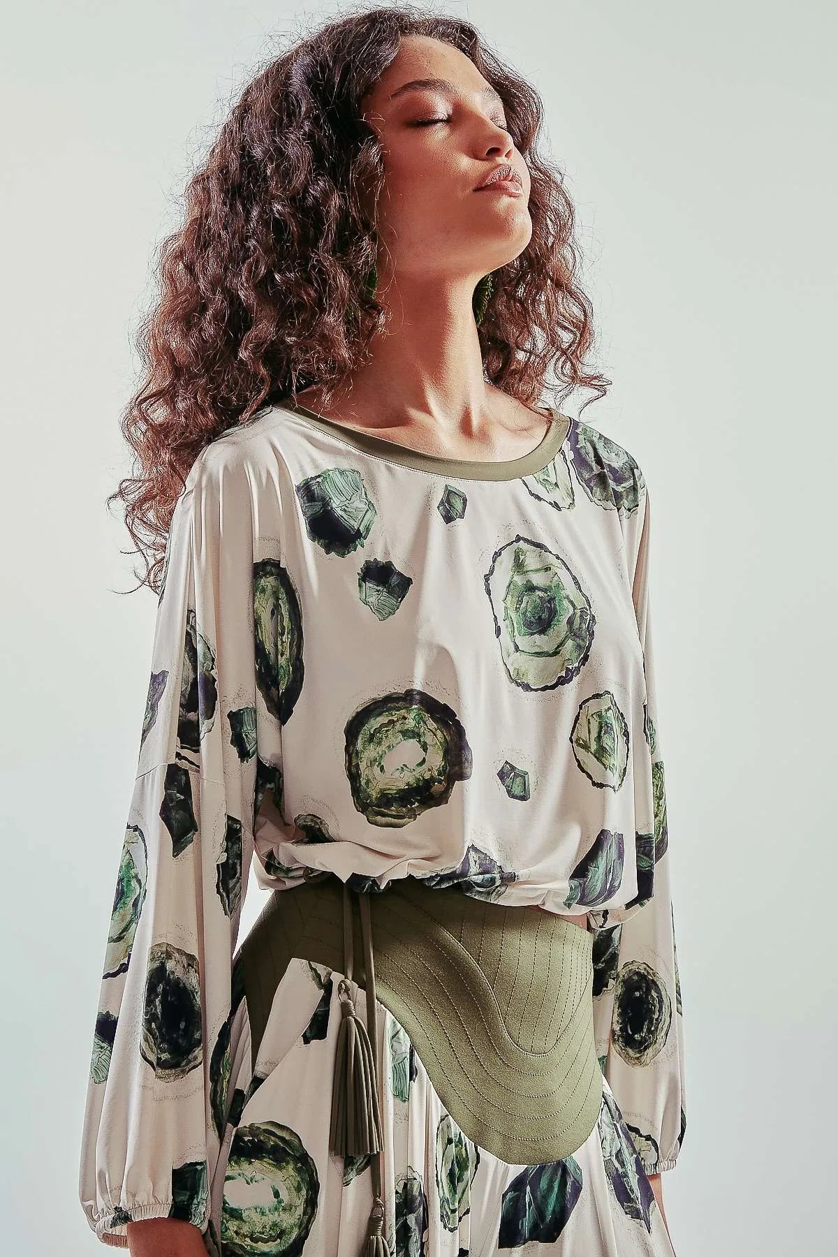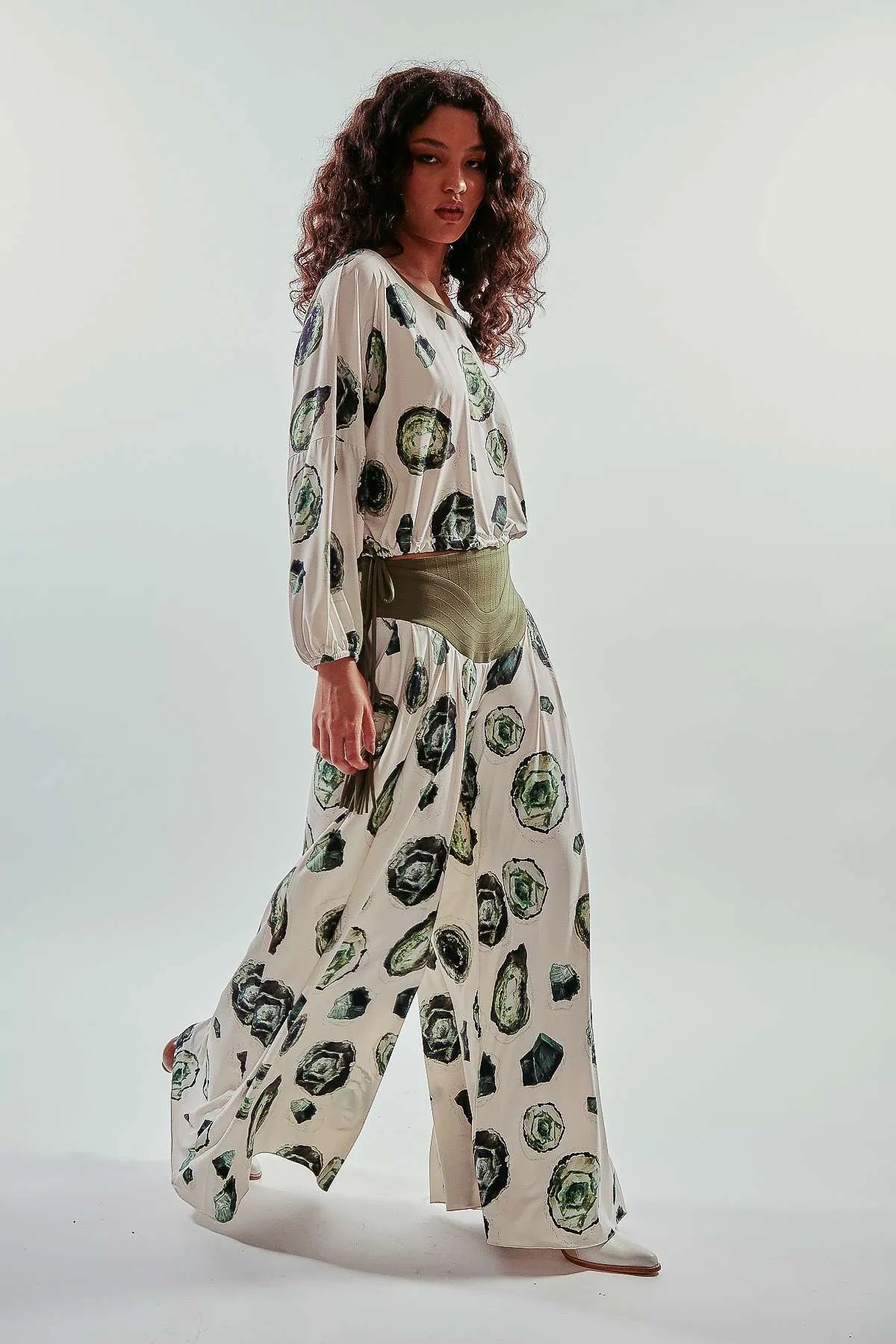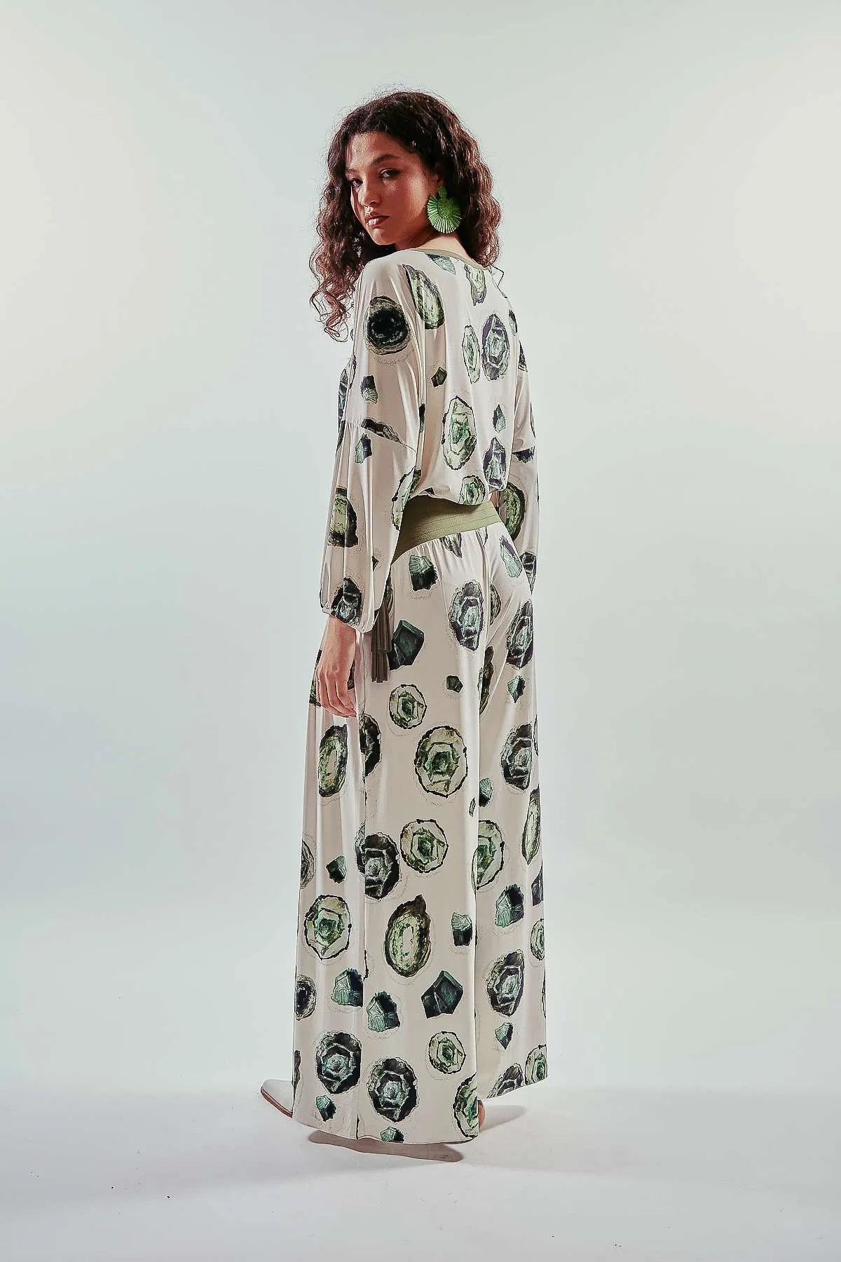 Pantalón largo pata elefante con estampa esmeraldas